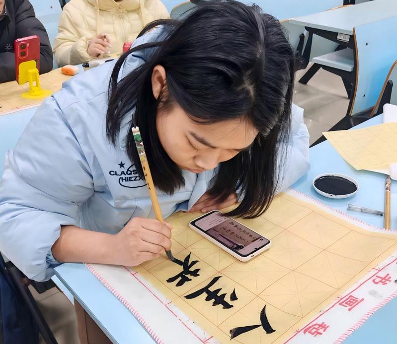本次活动以“运河”为核心创作主题,鼓励青少年用毛笔书写与运河相关的千古佳句,在横竖撇捺间触摸历史脉络、传承文化基因。征稿严格遵循传统书画规范,要求作品为竖式毛笔书写,规格涵盖四尺三开、四尺对开、四尺整张等。活动累计吸引50余名学生踊跃参与,5113教室内墨香氤氲,同学们屏息凝神、挥毫泼墨,全情投入创作。从章法布局到笔力顿挫,每一幅作品都饱含着对中华优秀传统文化的敬畏之心,承载着对家国故土的赤诚热爱。参与同学纷纷表示,在创作过程中,不仅提升了自身书法技艺,更深刻体会到运河文化所承载的民族记忆,以及两岸同胞同根同源、血脉相连的文化基因。后续,本次活动的优秀作品将进行集中展览与报道,让运河文化在新时代青年中焕发新的生机与活力。